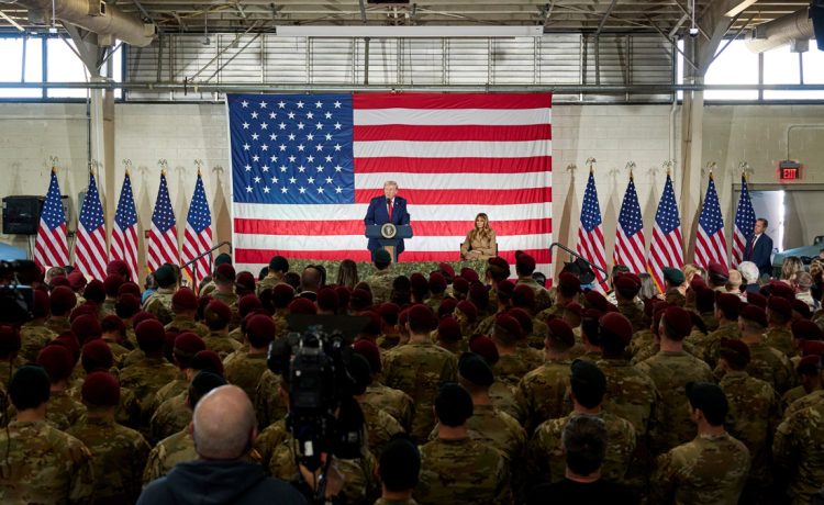 Ο πρόεδρος Τραμπ παρέκαμψε τους κανόνες αφού, απευθυνόμενος σε μέλη των ενόπλων δυνάμεων, εκφώνησε ομιλία κατά την οποία επέκρινε τους πολιτικούς του αντιπάλους και υποστήριξε πως οι Δημοκρατικοί θα υπονομεύσουν το στράτευμα εάν κερδίσουν τον έλεγχο του Κογκρέσου στις επόμενες εκλογές.