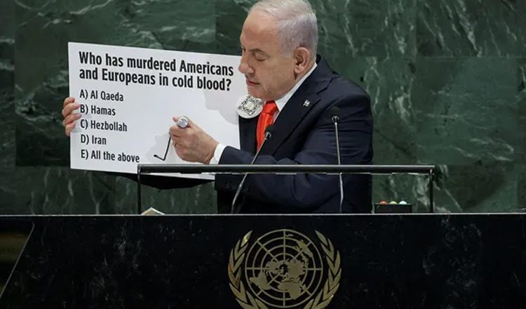 Ο Νετανιάχου έχει μιλήσει 15 φορές στη Γενική Συνέλευση του ΟΗΕ. Σε καμία από αυτές δεν παρουσίασε στον κόσμο την κατάσταση του Ισραήλ όσο άσχημη είναι. Τις ημέρες που προηγήθηκαν της εμφάνισής του, πάνω από 150 χώρες –συμπεριλαμβανομένης της Αυστραλίας, του Καναδά και μεγάλου μέρους χωρών της Ευρώπης– αναγνώρισαν ένα παλαιστινιακό κράτος ως διαμαρτυρία: κατά του παρατεταμένου πολιτικού και προσωπικού πολέμου του Νετανιάχου στη Γάζα και της δολοφονίας αμάχων• κατά των εξελίξεων στη Δυτική Όχθη, κατά των εγκατάσταση οικισμών και των βίαιων επιθέσεων των εποίκων που διαπράττουν πογκρόμ εναντίον Παλαιστινίων• και επίσης σε ένδειξη διαμαρτυρίας για φασιστικές και ρατσιστικές δηλώσεις Υπουργών και μελών της Κνεσέτ στον συνασπισμό του.
