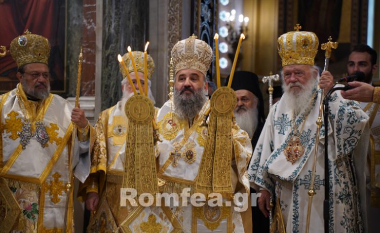 Με τον Αρχιεπίσκοπο συλλειτούργησαν οι Μητροπολίτες Δημητριάδος Ιγνάτιος, Χαλκίδος Χρυσόστομος, Μεσσηνίας Χρυσόστομος, Νέας Ιωνίας Γαβριήλ, Ιερισσού Θεόκλητος, Θεσσαλιώτιδος Τιμόθεος, Θήρας Αμφιλόχιος, Γόρτυνος Νικηφόρος, Παραμυθίας Σεραπίων και ο Επίσκοπος Σκοπέλου Νικόδημος.