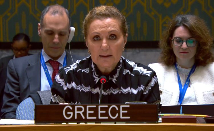 Η Μόνιμη Αντιπρόσωπος της Ελλάδας εξήρε «την ηγετική διπλωματική πρωτοβουλία και την αταλάντευτη δέσμευση των Ηνωμένων Πολιτειών για μια ειρηνική λύση», προσθέτοντας ότι «η ιστορία θα καταγράψει τη συλλογική μας απόφαση σήμερα».