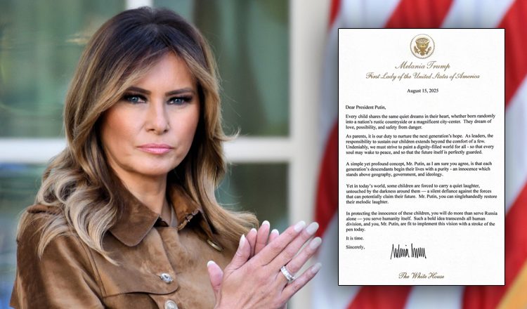Στη δημοσιότητα έδωσε το γραφείο της Μελάνια Τραμπ, την επιστολή της που επέδωσε ο σύζυγος της Ντόναλντ Τραμπ στον Βλαντίμιρ Πούτιν κατά τη συνάντησή τους την Παρασκευή στην Αλάσκα.