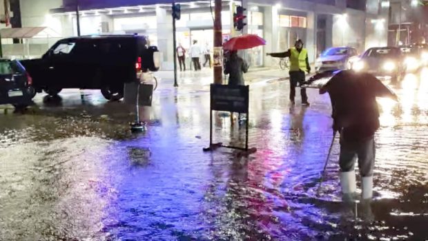 Μάλιστα η βροχή έφτασε για κάποια λεπτά τα 312 χιλιοστά/ώρα και χρειάστηκε να επέμβει η αστυνομία προκειμένου να ρυθμίσει την κυκλοφορία και να διακόψει τη διέλευση των οχημάτων.