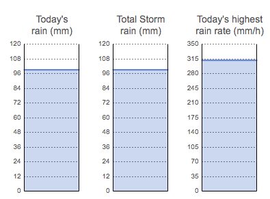 Μάλιστα η βροχή έφτασε για κάποια λεπτά τα 312 χιλιοστά/ώρα και χρειάστηκε να επέμβει η αστυνομία προκειμένου να ρυθμίσει την κυκλοφορία και να διακόψει τη διέλευση των οχημάτων.
