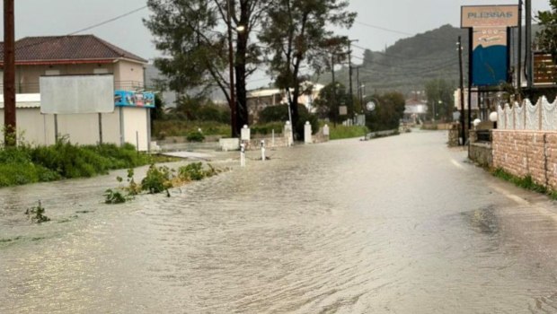 Στη Ζάκυνθο από την καταρρακτώδη βροχή δημιουργήθηκαν αρκετά προβλήματα σε πολλές περιοχές του νησιού, καθώς οι δρόμοι πλημμύρισαν.