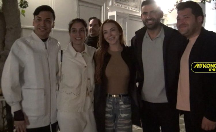 Η κάμερα του Mykonos Live TV την εντόπισε στα γραφικά σοκάκια παρέα με τον Άραβα σύζυγό της, Bader Shammas, τον συνεργάτη της, Πάνο Σπέντζο, και ένα φιλικό ζευγάρι. Όπως θα δείτε στο βίντεο, ενώ αρχικά η φίλη της έβαλε το χέρι της μπροστά εμποδίζοντας τον γνωστό φωτογράφο Νίκο Ζώτο και τον δημοσιογράφο Πέτρο Νάζο να την απαθανατίσουν, στη συνέχεια η ίδια η Lohan έδωσε το πράσινο φως και φωτογραφήθηκε με την παρέα της.
