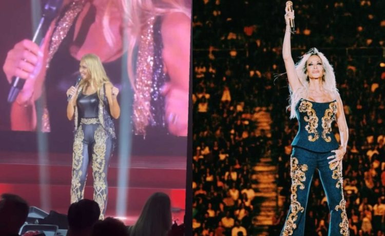 Το στυλ της Νατάσας Θεοδωρίδου θύμισε έντονα το χρυσό κοστούμι του οίκου Dolce&Gabbana που είχε επιλέξει η Άννα Βίσση για τη δική της θριαμβευτική εμφάνιση στο Παναθηναϊκό Στάδιο.