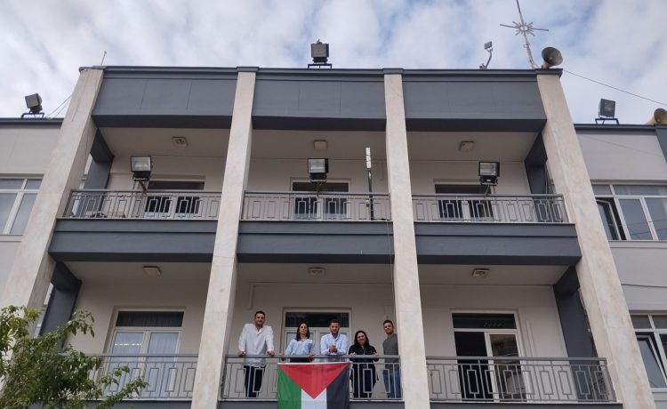 Τη σημαία της Παλαιστίνης ύψωσε σήμερα η δημοτική αρχή του Τυρνάβου στο δημαρχείο σε ένδειξη συμπαράστασης στον Παλαιστινιακό λαό.