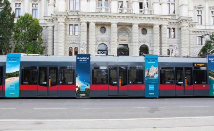 Από τις 25 Ιουνίου έως και τις 24 Δεκεμβρίου 2025, ένα τραμ που διασχίζει καθημερινά κεντρικά σημεία της αυστριακής πρωτεύουσας φέρει εξωτερική διαφήμιση της Σκιάθου, προβολή που αναμένεται να προσεγγίσει χιλιάδες επιβάτες και περαστικούς σε μια περιοχή με μεγάλη πυκνότητα κοινού.