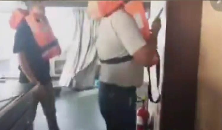 Στο βίντεο φαίνεται καπνός να βγαίνει από το κατάστρωμα και θρύψαλα γυαλιών να καλύπτουν το δάπεδο. Στη συνέχεια, το βίντεο δείχνει νερό να μπαίνει στους θαλάμους διαμονής και αρκετά μέλη του πληρώματος να φορούν σωσίβια.