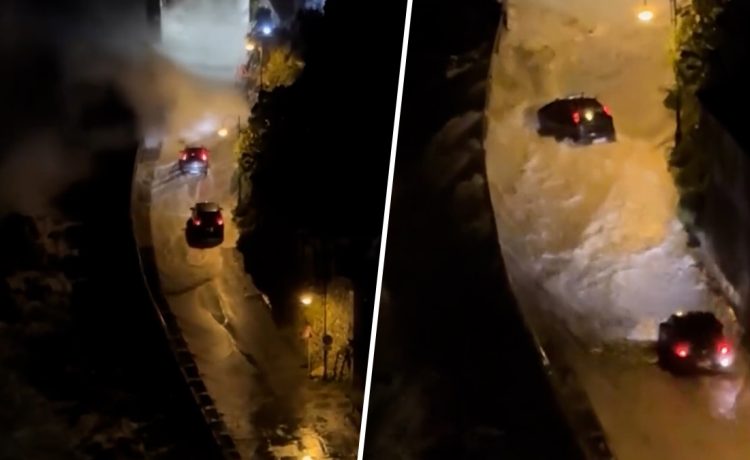 Στο βίντεο που τράβηξε ο χρήστης Carmelo Magenta και αναμετέδωσαν πολλά ιταλικά μέσα, φαίνεται η τρομακτική στιγμή που ένα τεράστιο κύμα ξεπερνά τα προστατευτικά στην άκρη του δρόμου και πέφτει με δύναμη στην άσφαλτο, παρασύροντας τα δύο οχήματα που βρίσκονταν εκείνη την ώρα στο σημείο.