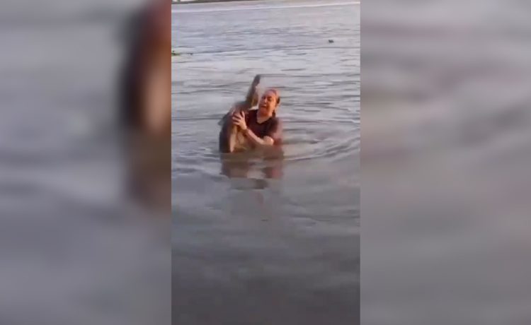 Το «ακίνδυνο» πλωτό αντικείμενο ανάμεσα στα πόδια της, αποκαλύφθηκε ότι ήταν ένας νεαρός… αλιγάτορας.