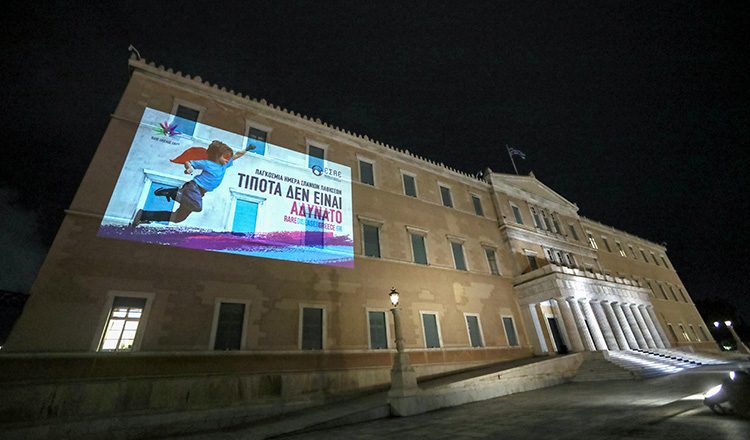 Tην Παγκόσμια Ημέρα Σπανίων Παθήσεων τίμησε η Βουλή των Ελλήνων με τη φωταγώγηση του κτηρίου του Ελληνικού Κοινοβουλίου με το σύμβολο της Διοργάνωσης από το σωματείο «95′, Ελληνική Συμμαχία για τους Σπάνιους Ασθενείς» και το λογότυπό του.