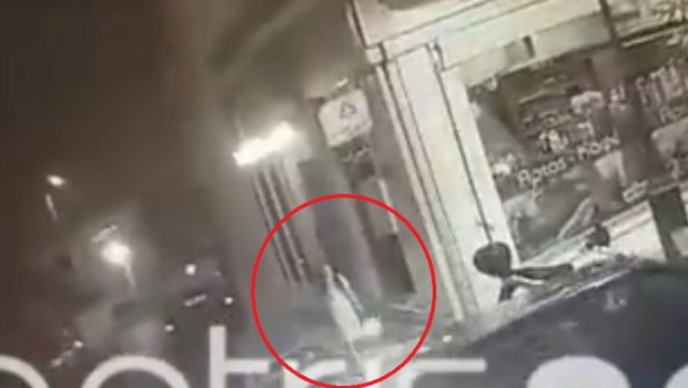 Στο ίδιο πλάνο φαίνεται να περνά από μπροστά της και το μαύρο αυτοκίνητο το οποίο σταματά λίγα μέτρα πιο κάτω.