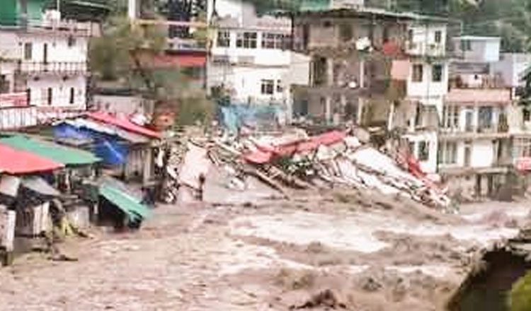 Οπτικό υλικό δείχνει λασπόνερα να έχουν κατακλύσει χθες την πόλη Σαχαστραντχάρα, στην περιοχή Ντεχραντούν, προκαλώντας καταστροφές σε καταστήματα, δρόμους και κατοικίες και πολίτες να προσπαθούν να βρουν καταφύγιο.