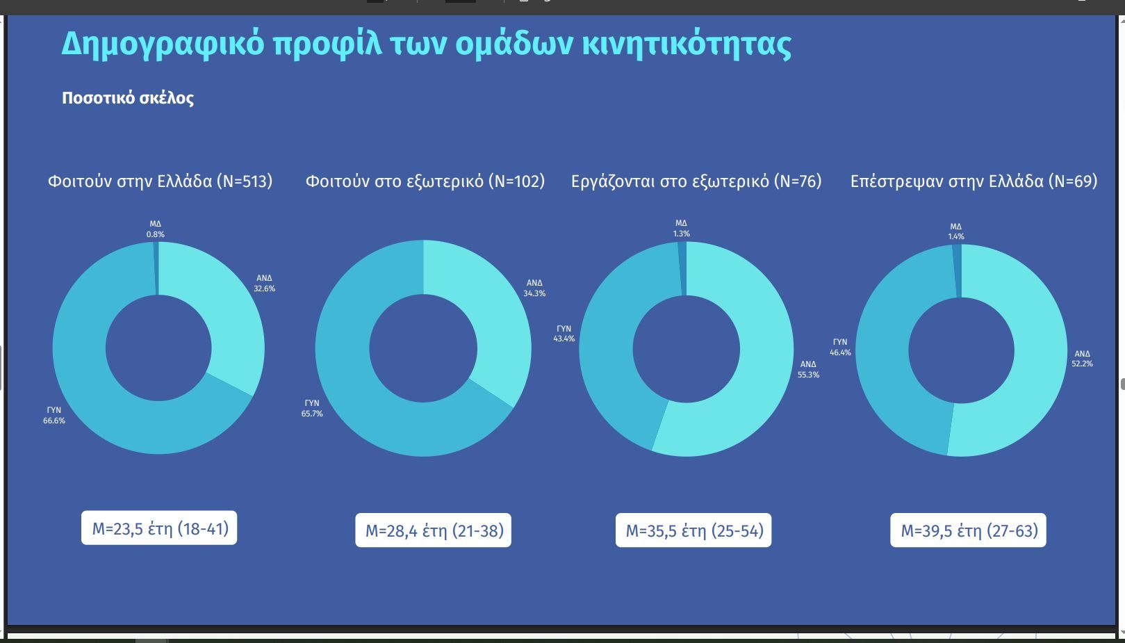 - 513 προπτυχιακές/οί φοιτήτριες/ές που σκέφτονται να φύγουν από την Ελλάδα και να εγκατασταθούν στο εξωτερικό (μέση ηλικία τα 23,5 έτη)