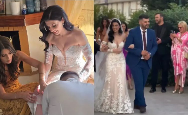 Η νύφη είχε επιλέξει ένα πολύ εντυπωσιακό νυφικό, με μακριά μανίκια και λουλούδια κεντημένα πάνω του, καθώς και ένα μακρύ πέπλο, ενώ η Ιωάννα Σαρρή είχε επιλέξει ένα maxi φόρεμα, με λάμψεις κεντημένες, σε πορτοκαλί – χρυσό χρώμα. Φυσικά, από το πλευρό του μοντέλου δεν έλειψε ο Γιώργος Σαμπάνης, ο οποίος φαίνεται σε ένα από τα βίντεο, την ώρα που η νύφη φτάνει στην εκκλησία, να χειροκροτά και να χαμογελά με την καλή του στην άκρη.