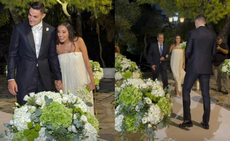 Ο μπασκετμπολίστας ανέβηκε τα σκαλιά της εκκλησίας και ενώθηκε με τα ιερά δεσμά του γάμου με την αγαπημένη του, Ναυσικά Νικοδήμου σε μια ρομαντική ατμόσφαιρα.