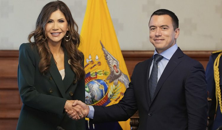 Οι κυβερνήσεις των ΗΠΑ και του Ισημερινού υπέγραψαν χθες Πέμπτη συμφωνία για την ασφάλεια με την ευκαιρία επίσκεψης στο Κίτο της Αμερικανίδας υπουργού Εσωτερικής Ασφαλείας Κρίστι Νόεμ, ανακοίνωσε ο ομόλογός της υπουργός Εσωτερικών του Ισημερινού Τζον Ρέιμπεργκ.