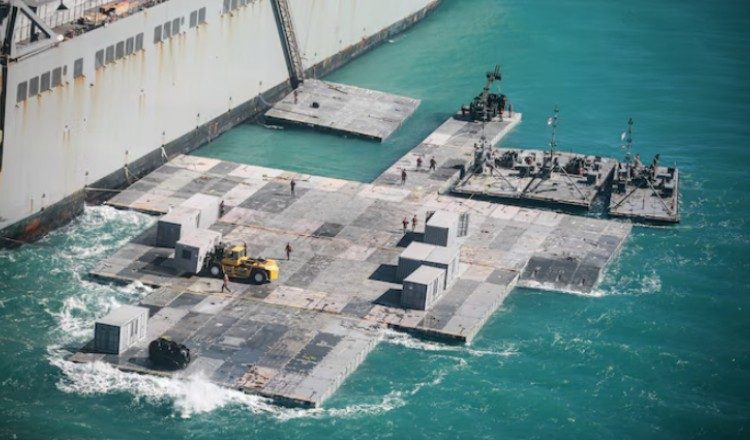 Πλωτή πλατφόρμα, που θα χρησιμοποιηθεί ως προβλήτα από το έδαφος της Γάζας στα πλοία του Πολεμικού Ναυτικού επιστρατεύουν οι ΗΠΑ, προκειμένου να προσφέρουν ανθρωπιστική βοήθεια στους Παλαιστινίους.