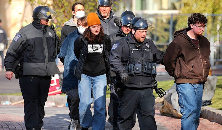 Οι προσαγωγές έγιναν καθώς κάποιοι διαδηλωτές “ξεπέρασαν τα όρια” και ξεκίνησαν να φωνάζουν συνθήματα όπως “Σκοτώστε τους Εβραίους”, ανέφερε ανακοίνωση του πανεπιστημίου στην πλατφόρμα Χ.