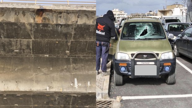 Έπεσε κομμάτι τσιμέντου από γέφυρα και έσπασε παρμπρίζ αυτοκινήτου.