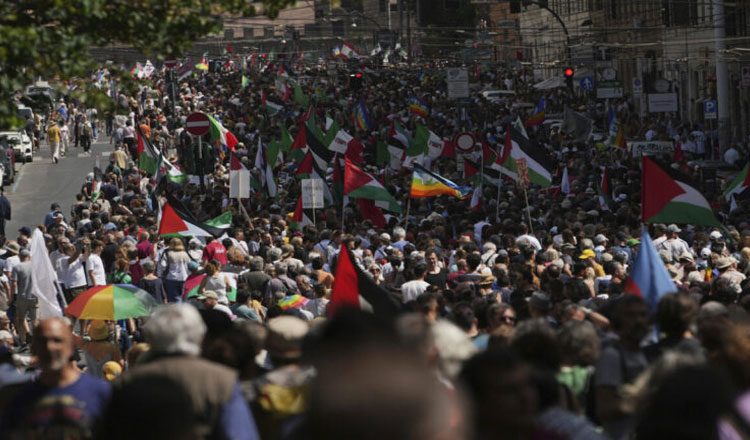Μαζική κινητοποίηση αλληλεγγύης προς τον παλαιστινιακό άμαχο πληθυσμό οργάνωσαν σήμερα το απόγευμα στη Ρώμη τα τρία μεγαλύτερα κόμματα της ιταλικής αντιπολίτευσης. Το Δημοκρατικό Κόμμα, τα Πέντε Αστέρια, η Ιταλική Αριστερά με τους οικολόγους, συνδικάτα και οργανώσεις της κοινωνίας των πολιτών ζήτησαν να τερματιστούν άμεσα οι επιχειρήσεις του ισραηλινού στρατού στην Λωρίδα της Γάζας.