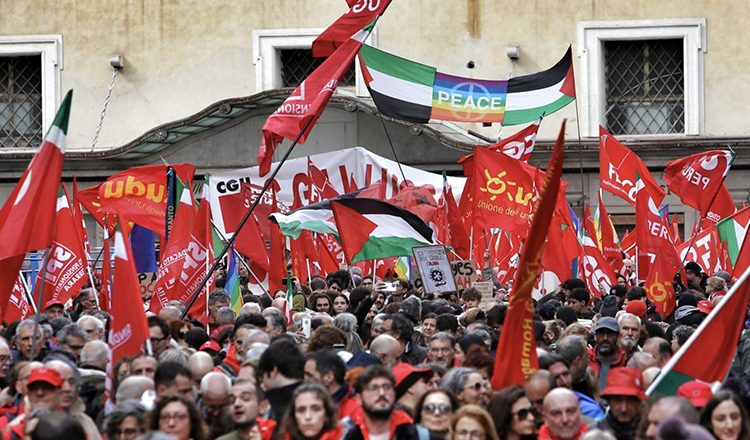 Τα αυτόνομα «συνδικάτα βάσης» της Ιταλίας απεργούν, σήμερα, σε όλους τους τομείς του δημόσιου και ιδιωτικού τομέα, σε ένδειξη συμπαράστασης προς τον παλαιστινιακό λαό. Πρόκειται για γενική, απεργία «κατά της γενοκτονίας στην Παλαιστίνη και την παροχή όπλων στο Ισραήλ» και κατά «της οικονομίας που βασίζεται στον πόλεμο και στην αύξηση των στρατιωτικών δαπανών».