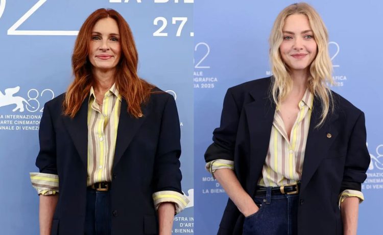 Σήμερα, όμως, είδαμε το ίδιο ακριβώς look στην Amanda Seyfried! Το γεγονός δεν ήταν τυχαίο: η κοινή τους στιλίστρια, Elizabeth Stewart, αποκάλυψε μέσω Instagram ότι η Julia Roberts «δάνεισε» το outfit στην Amanda, στέλνοντας έτσι ένα σαφές μήνυμα βιωσιμότητας.