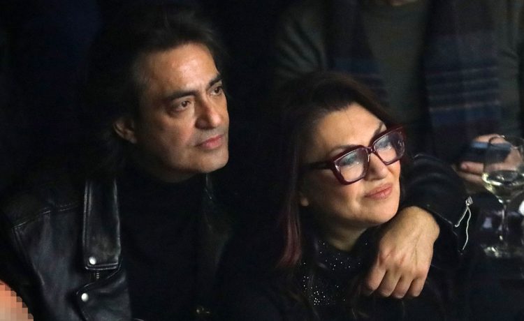 Η Καίτη Γαρμπή και ο Διονύσης Σχοινάς επέλεξαν να κάνουν και matchy matchy outfits καθώς και οι δύο έκαναν total black look με δερμάτινα jackets, ενώ ήταν αγκαλιασμένοι στο τραπέζι τους.