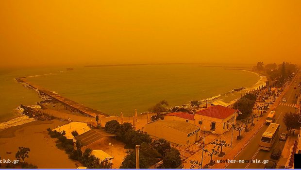 Πρωτόγνωρες εικόνες αντικρίζουν οι κάτοικοι της Καλαμάτας λόγω της αφρικανικής σκόνης που έχει καλύψει κυριολεκτικά τα πάντα. Ο ουρανός της μεσσηνιακής πρωτεύουσας βάφτηκε κίτρινος από την υψηλή συγκέντρωση αφρικανικής σκόνης. Οι θυελλώδεις νοτιάδες μετέφεραν μεγάλες ποσότητες σαχαριανής σκόνης, κάνοντας αποπνικτική την ατμόσφαιρα ειδικά για όσους αντιμετωπίζουν αναπνευστικά προβλήματα.
