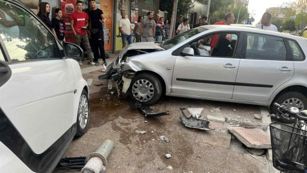 Τα δυο ΙΧ ακινητοποιήθηκαν μετά τη σύγκρουση λίγα εκατοστά πριν την είσοδο φαρμακείου. Από θαύμα δεν υπήρξαν σοβαροί τραυματισμοί ούτε στους επιβαίνοντες ούτε σε διερχόμενους στο πεζοδρόμιο.
