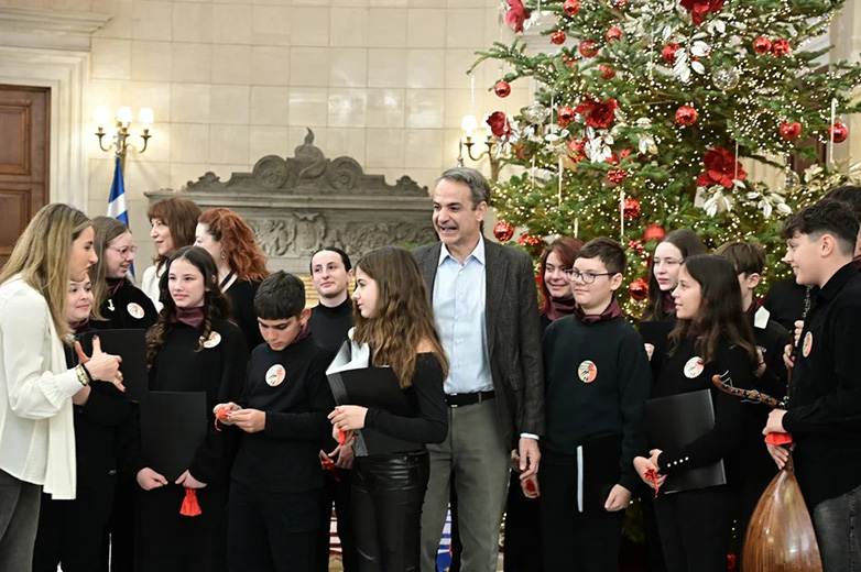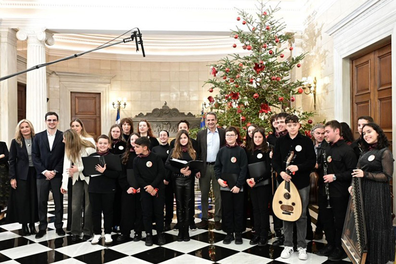 Ο πρωθυπουργός και η οικογένειά του άκουσαν σήμερα, παραμονή Χριστουγέννων, τα κάλαντα στο Μέγαρο Μαξίμου, όπου βρέθηκαν μαθητές από το Μουσικό Σχολείο Αλίμου και τον Πολιτιστικό Σύλλογο Ερέτριας «Κωνσταντίνος Κανάρης».