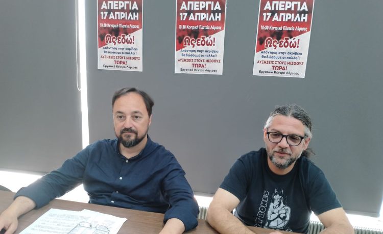 Σε σχετική συνέντευξη τύπου μελών της διοίκησης ο πρόεδρος του ΕΚΛ κ. Γ. Σκόκας ότι η απεργία πέραν των αιτημάτων για αυξήσεις στους μισθούς, την επαναφορά των συλλογικών συμβάσεων και των τριετών, περιλαμβάνει και αιτήματα που σχετίζονται με την αποκατάσταση των πληγέντων από τις πλημμύρες και την αναγκαιότητα λήψης μέτρων για την αντιπλημμυρική προστασίας της περιοχής. Παράλληλα στο πλαίσιο αιτημάτων του Εργατικού Κέντρου Λάρισας, υπάρχουν αναφορές στα απογευματινά χειρουργεία, αλλά και στην εμπλοκή της χώρας μας στους πολεμικούς σχεδιασμούς σε Ουκρανία και Μέση Ανατολή.