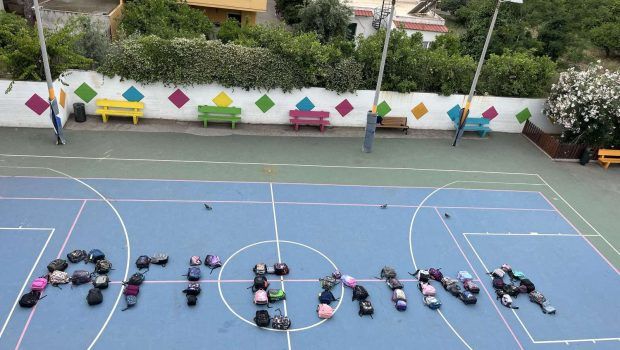 Με έναν συγκλονιστικό τρόπο επέλεξαν να εκφράσουν τη βαθιά θλίψη τους οι συμμαθητές της 7χρονης Αγγελίνας που έχασε τη ζωή της περνώντας μέσα από τζαμαρία διαμερίσματος στην Καλλιθέα. Έτσι, για το τελευταίο «αντίο» σχημάτισαν με τις σχολικές τους τσάντες το όνομά της στο γήπεδο του μπάσκετ στο 23ο Δημοτικό Σχολείο όπου φοιτούσε το μικρό αγγελούδι.