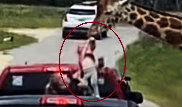 Όσα ακολούθησαν συνέβησαν αστραπιαία… Μέσα σε μια στιγμή, η καμηλοπάρδαλη σήκωσε στον αέρα το κοριτσάκι, ενώ, το στιμιότυπο απαθανάτισε με την κάμερά του το αυτοκίνητο που ακολουθούσε το «μοιραίο» τζιπ της οικογένειας.