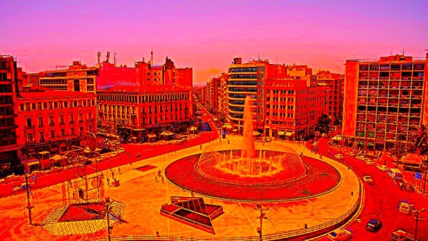 Βίντεο από drone έδειξε ότι στις 12:00 το μεσημέρι, η θερμοκρασία του οδοστρώματος στην Πλατεία Ομόνοιας άγγιξε τους 70° Κελσίου.