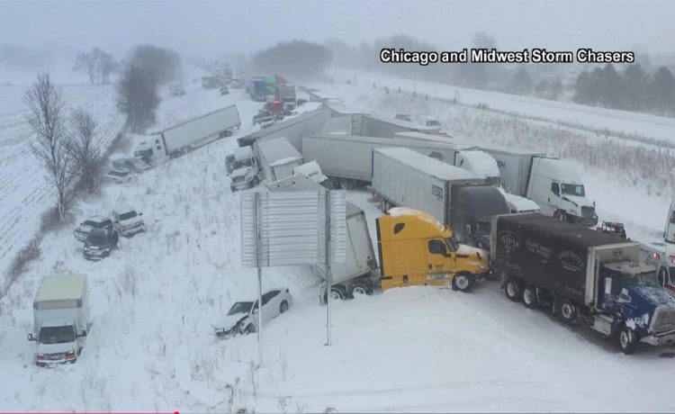 Καραμπόλα με πάνω από 100 οχήματα λόγω σφοδρών χιονοπτώσεων