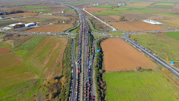 Κλούβες των ΜΑΤ είχαν κλείσει τις εισόδους και εξόδους του ανισόπεδου κόμβου του αυτοκινητόδρομου Ε-65, προκειμένου να αποτρέψουν την πρόσβαση στους διαδηλωτές.
