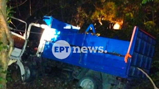 Η σφοδρή σύγκρουση είχε ως αποτέλεσμα το φορτηγό να εκτραπεί της πορείας του και να καταλήξει εκτός δρόμου, μέσα σε παρακείμενο χαντάκι με συνέπεια ο οδηγός να εγκλωβιστεί στην καμπίνα του οχήματος.