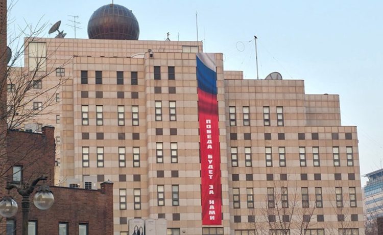 Καταδικάζει την ανάρτηση πανό στη ρωσική πρεσβεία με το μήνυμα «η νίκη θα είναι δική μας»