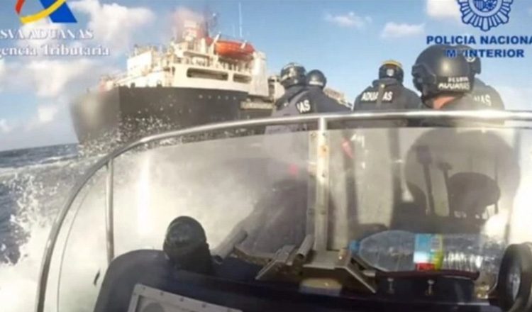 Το πλοίο, υπό σημαία Τανζανίας, αναχαιτίστηκε 300 χιλιόμετρα από τη Λανθαρότε, ένα από τα Κανάρια —το αρχιπέλαγος βρίσκεται στα ανοικτά των βορειοδυτικών ακτών της Αφρικής—, σύμφωνα με κοινή ανακοίνωση της χωροφυλακής, της αστυνομίας και της εφορίας.