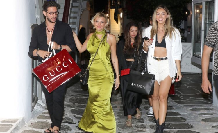 Το ζευγάρι βρέθηκε να περπατάει σε σοκάκι του νησιού των ανέμων, περνώντας χαλαρές στιγμές. Η Κατερίνα Λιόλιου επέλεξε να φορέσει ένα φόρεμα σε λαδί απόχρωση, ενώ ο σύντροφός της ήταν στο πλευρό της με πουκάμισο και παντελόνι σε μαύρο χρώμα.