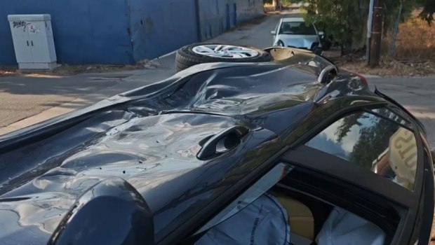 Η σύγκρουση ήταν σφοδρή και στο όχημα που ανατράπηκε εγκλωβίστηκε η οδηγός, ηλικίας 35 με 40 ετών.