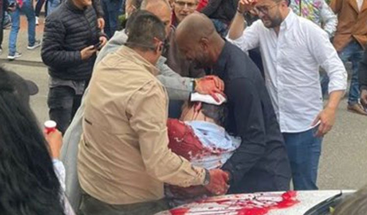 Σε εικόνες που μετέδωσαν κολομβιανά μέσα ενημέρωσης, διακρίνεται αιμόφυρτος ο 39χρονος γερουσιαστής, ο οποίος είναι υποψήφιος στις προεδρικές εκλογές που θα διεξαχθούν τον προσεχή Μάιο, στην αγκαλιά συνεργατών του.