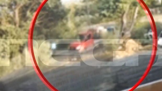Από άλλη κάμερα ασφαλείας φαίνεται και πάλι το σκηνικό. Το μηχανάκι που φεύγει και η άμμος που σηκώνεται και το φορτηγό που επανέρχεται στο ρεύμα κυκλοφορίας, άλλοι μοτοσικλετιστές θα σταματήσουν.