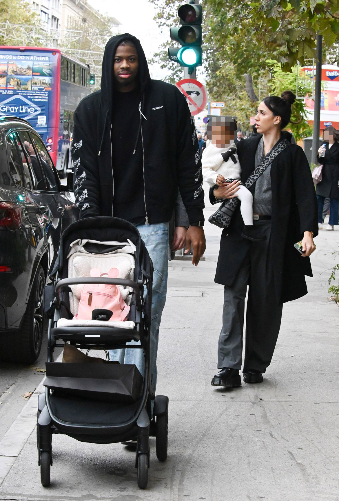 Ο 28χρονος σέντερ του Άρη απαθανατίστηκε από τον φωτογραφικό μας φακό σε βόλτα στους εμπορικούς δρόμους της πόλης, δείχνοντας ιδιαίτερα χαλαρός και ευδιάθετος στο πλευρό της οικογένειάς του.