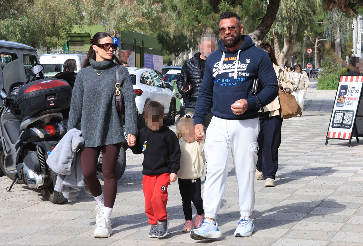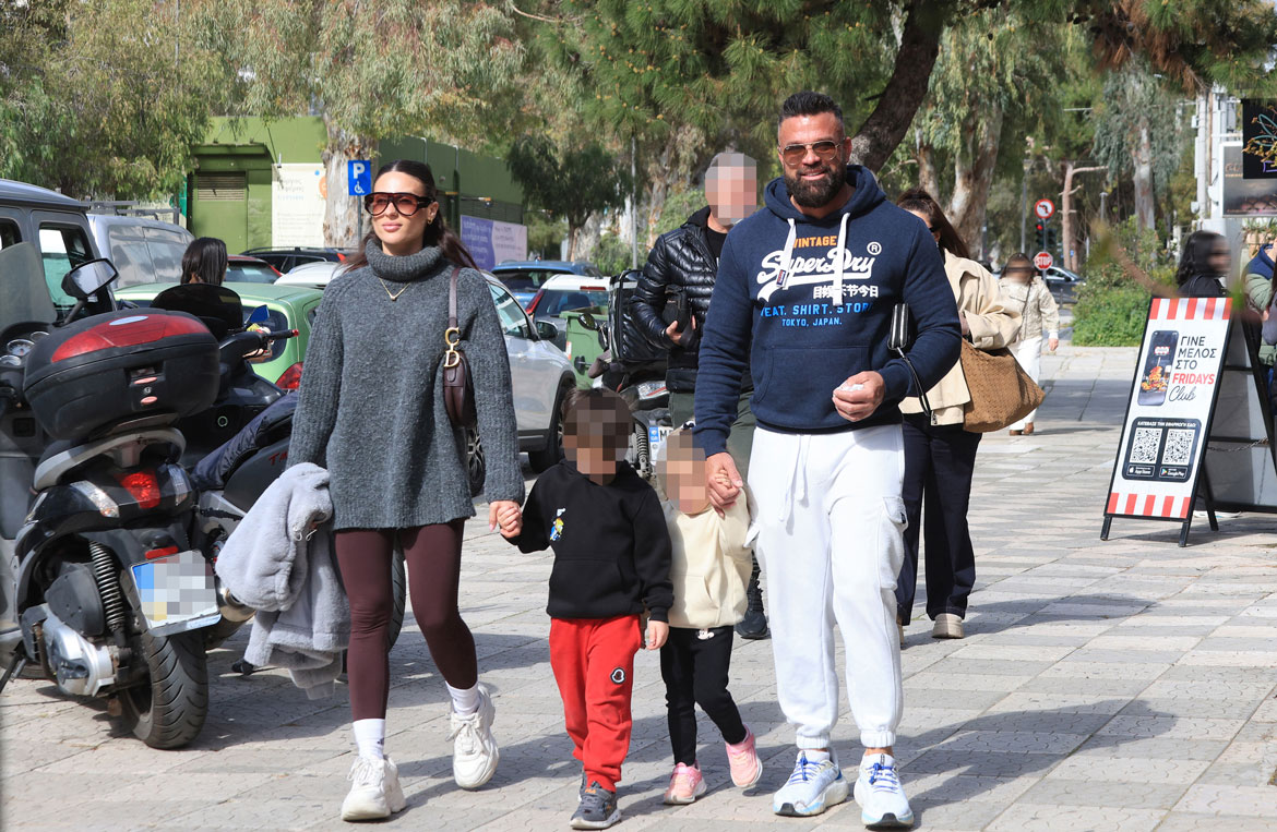 Το ζευγάρι απαθανατίστηκε στους δρόμους της περιοχής, κρατώντας τα παιδιά από το χέρι και απολαμβάνοντας στιγμές καθημερινότητας μακριά από τις επαγγελματικές τους υποχρεώσεις.