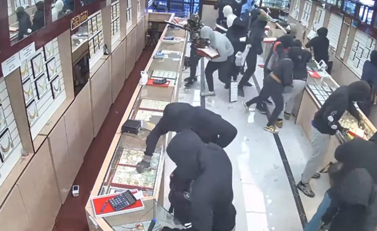 Το αμερικανικό υπουργείο Δικαιοσύνης δημοσίευσε βίντεο με εισβολή συμμορίας είκοσι τουλάχιστον κουκουλοφόρων που ρήμαξε κοσμηματοπωλείο στην Καλιφόρνια, αρπάζοντας κοσμήματα αξίας πάνω από 1,7 εκατομμύρια δολάρια μέσα σε ελάχιστο χρόνο.