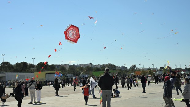Με ερυθρόλευκους χαρταετούς ο ουρανός στον Πειραιά