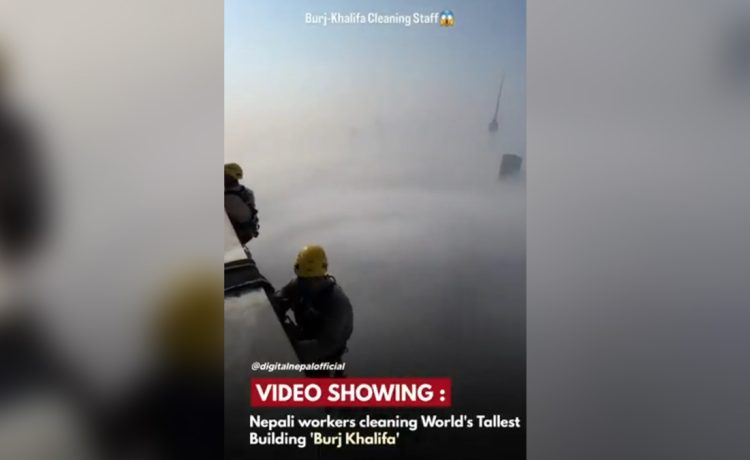 Nepali workers cleaning the world’s tallest building, Burj Khalifa.
